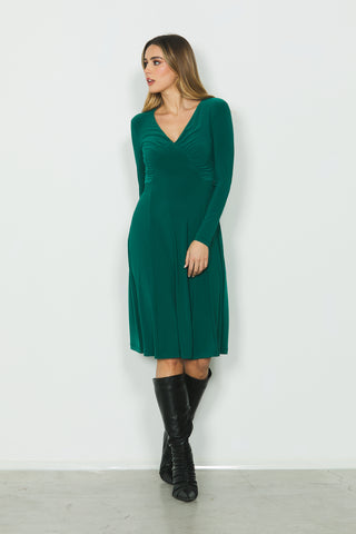 Abito FATIMA midi manica lunga scollo v con pieghe più tagli