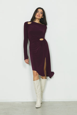Abito ANNAS midi manica lunga con goccia spalla più vita con coulisse asimmetrico