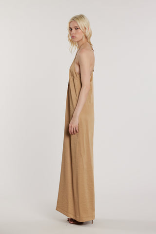 Abito LANE lungo smanicato doppio scollo a V con pieghe più arricci più rouches