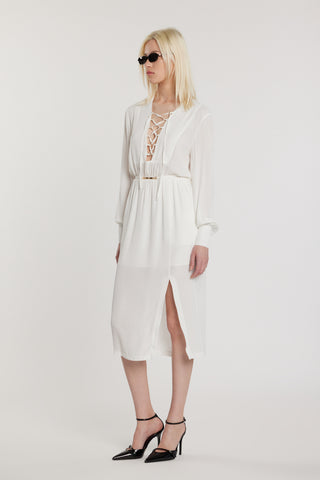 Abito MARTINEZ midi maniche lunghe con stringhe scollo più elastico più cintura più spacco