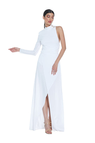 Abito ENIF lungo manica lunga monospalla con spacco davanti più catena più scollo dietro più bott.