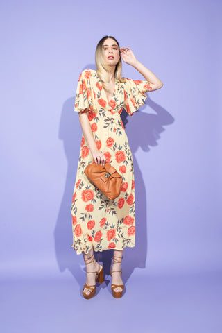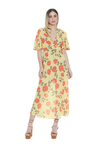 Abito VERITATE lungo mezza manica ampia scollo incrocio fant. Rose