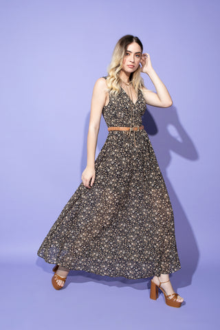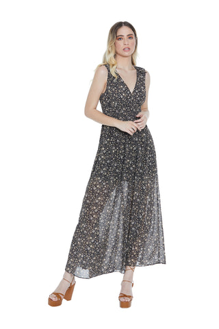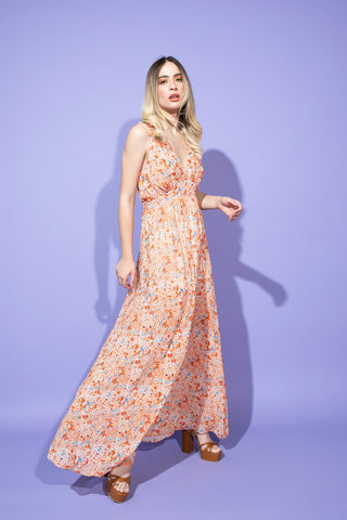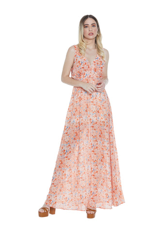 Abito RUMIKO lungo con spalline doppio scollo v con arric.schiena fant.fiori