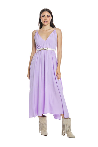 Abito AMMER lungo con spalline intreccio doppio scollo v con giro ampio