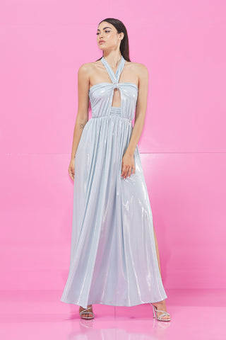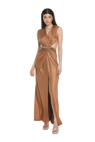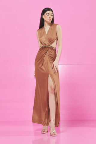 Abito RUTILATO lungo senza manica cut-out con catena più spacco