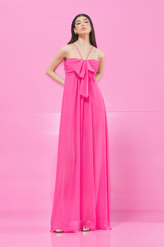 Abito DEVI_A lungo scollo dietro con collana catena stella più tulle lurex plisse'