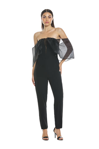 Tuta ACQUAMARI cavallo basso scollo bardot con maniche più inserto organza