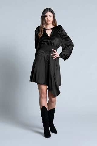 Abito STICA corto manica lunga con spacchetto spalla scesa più scollo con nodo raso