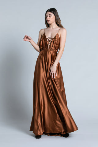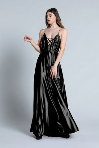 Abito CLASSIX_A lungo Top con stringhe più anelli più bretelle catena raso