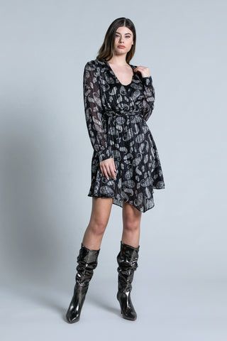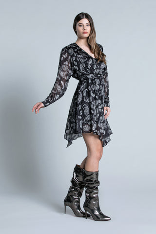 Abito ONDA corto manica lunga con spalline sc.incrocio con Cintura fant.foulard