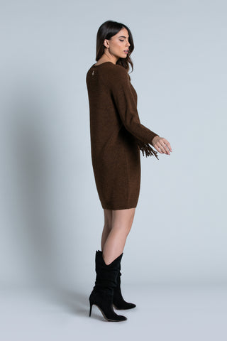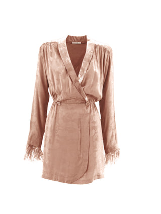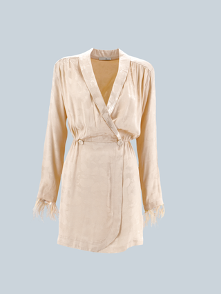 Abito MASA corto manica lunga con piume scollo incrocio con pannello