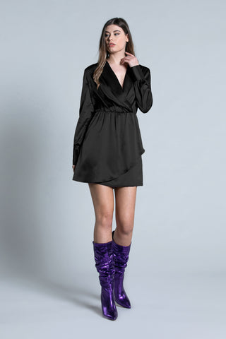 Abito MERIT corto manica lunga scollo incrocio effetto Giacca più Gonna portafoglio