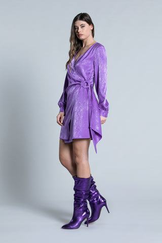 Abito ROMITE corto manica lunga scollo più Gonna incrocio con Cintura
