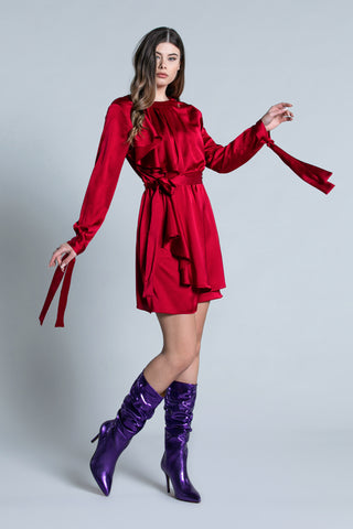 Abito GEMA corto manica lunga con fusciacca goccia schiena più volant più Cintura