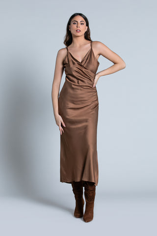 Abito CRANC lungo senza maniche scollo incrocio con pieghe più spacco