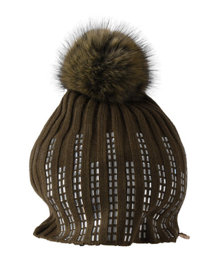 Cappello LUCCIOLA con risvolto più lav.coste più strass più pon pon
