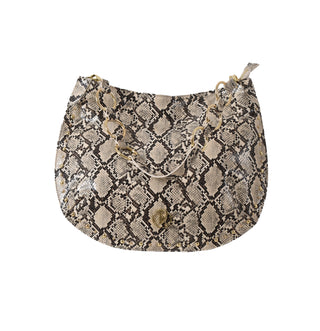 Borsa CALCUTTA_A mezza luna con manico catena più zip f. Pitonata laminata