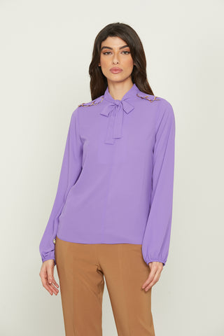 Camicia DIRANNE manica lunga con risv.raso più collana perle e strass lettere