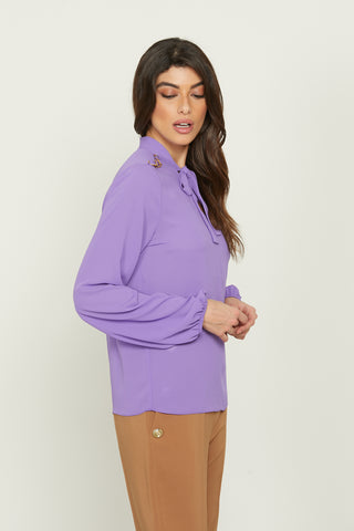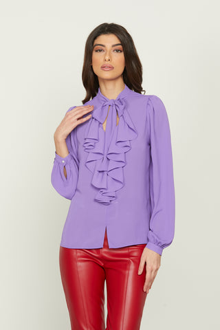 Camicia TORMENTA manica lunga palloncino scollo v con rouches più fusciacca