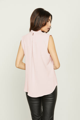 Top LABUCHE con apertura davanti più arricci più spilla strass