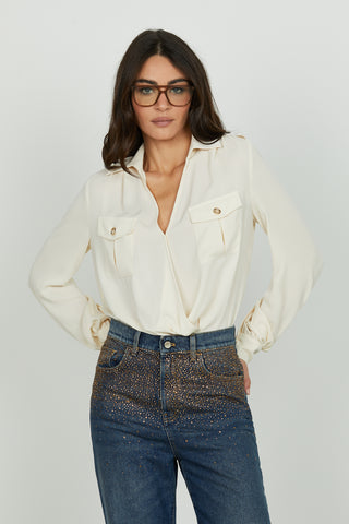 Body FACILIS manica lunga scollo incrocio più tasche più alette