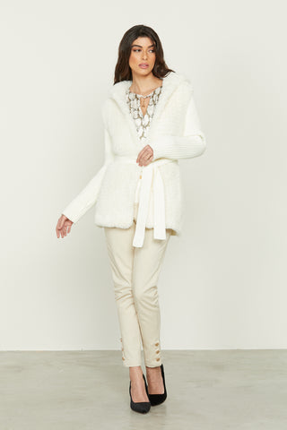 Pelliccia cardigan NADIA eco manica lunga con cappuccio più cintura più inserti maglia