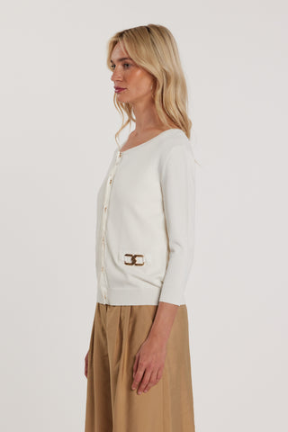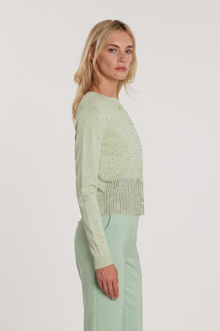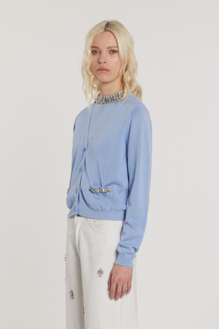 Cardigan MOSS maniche lunghe girocollo con bottoni più applicazioni strass
