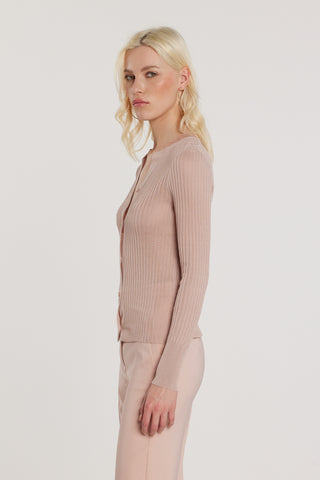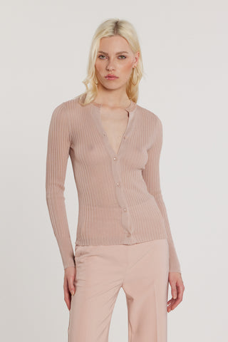 Cardigan LING maniche lunghe scollo a V con inserti pizzo costina
