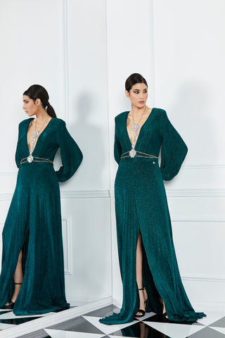 Abito BATURA scollo a v profondo manica lunga con collana pietre più strass lurex