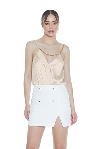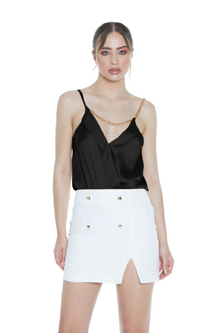 Tuta MIHAKO vita alta palazzo top scollato con aperture più accessorio