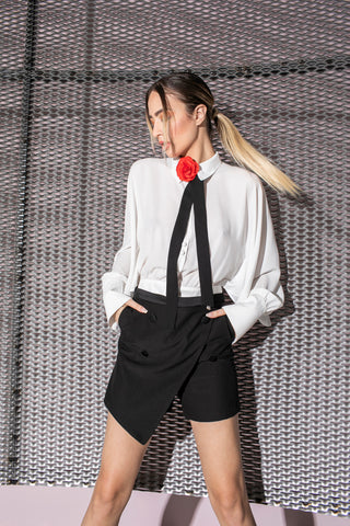 Camicia ALYA con fusciacca collo manica lunga pipistrello più code