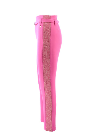 Panta ALMACH capri con bande tulle ricamo più cintura fibbia strass