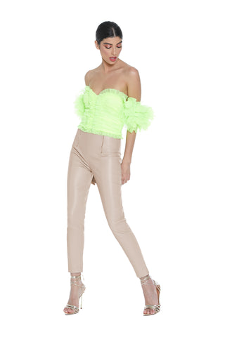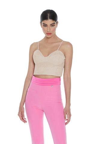 Crop-top DALIM con reggiseno ecopelle più fibbia davanti più tulle più zip retro