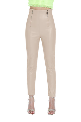 Panta SHOKEN vita alta stretto doppia zip davanti più impunture ecopelle