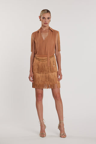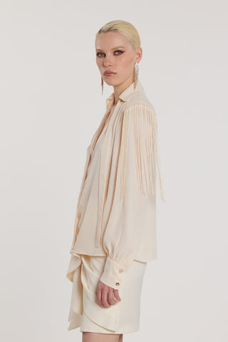 Blusa FLAPS scollo a V maniche lunghe più fusciacca più frange