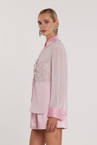 Camicia GHINI maniche lunghe con inserti in raso più spille gioiello