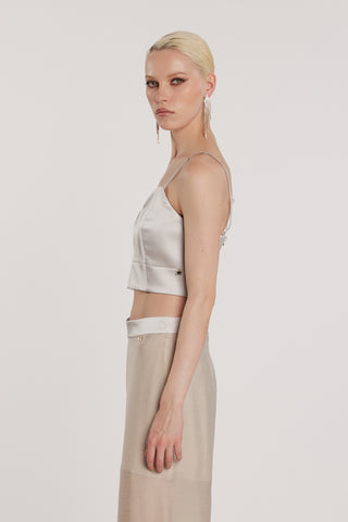 Top TENERAFY corto con gale più fiore spilla più bottoncini sul retro
