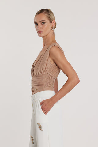 Body PANDOLFI in lurex doppio scollo a V profondo con arricciatura