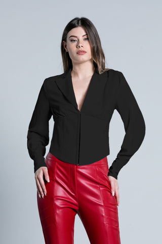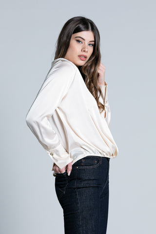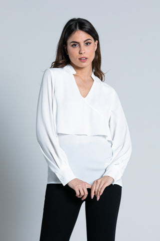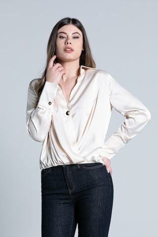 Blusa TORAS manica lunga scollo incrocio con bottone più elastico asimmetrica