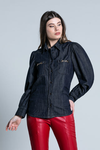 Camicia INCAM manica lunga palloncino con tasche più fibbie cavallerizza denim