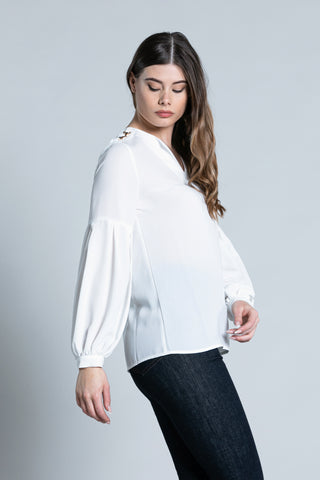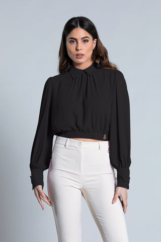 Blusa BABBA corta manica lunga con martingala più pieghe più apertura schiena