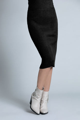 Longuette ALTIRESA vita alta con spacchi più cintura logo denim black
