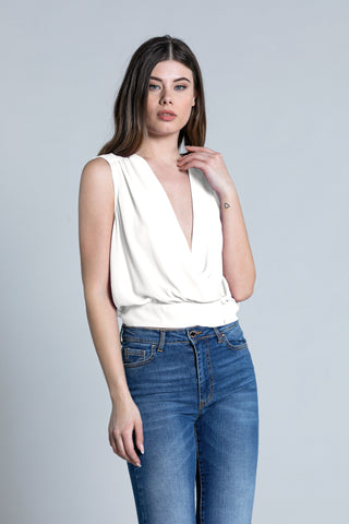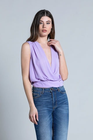 Blusa BORNY corta senza maniche scollo incrocio più bottoncini