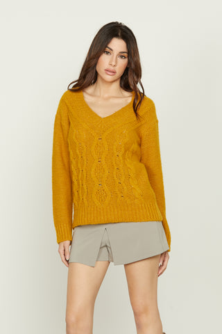 Maglia SPACCO manica lunga scollo v con lavorazione trecce