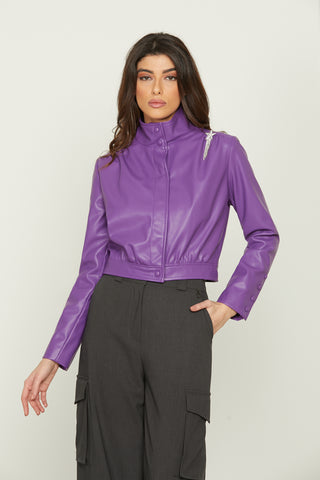 Giubbino SPECIALE manica lunga con rouches più zip più collo koreana ecopelle