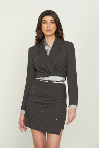 Giacca INTENT corta manica lunga doppio petto con pieghe più snap più strass