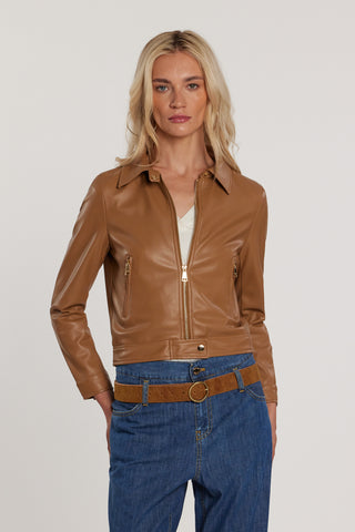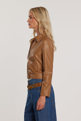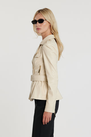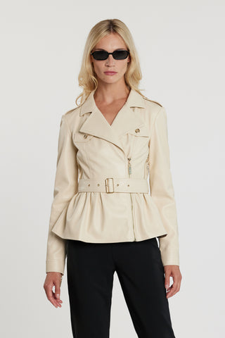 Giubbino TAYLOR maniche lunghe chiodo con zip più cintura più balza sul fondo ecopelle