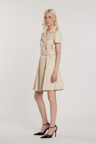Abito GRACELLE midi maniche lunghe effetto chiodo con zip più cintura con gonna a campana ecopelle