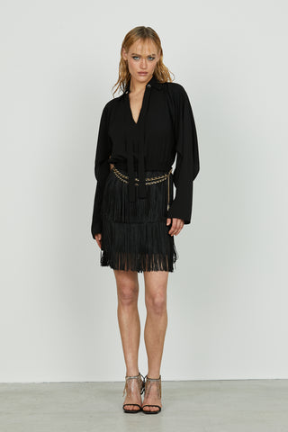 Abito ELGUAG corto scollo a v manica lunga con ap. Più fusciacca più gonna frange più cintura