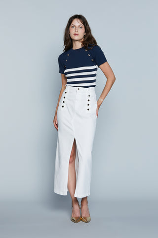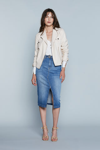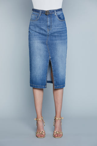 Longuette MIJAS Vita Alta con Cintura più Fibbia Logo 5Ts con Spacco Denim